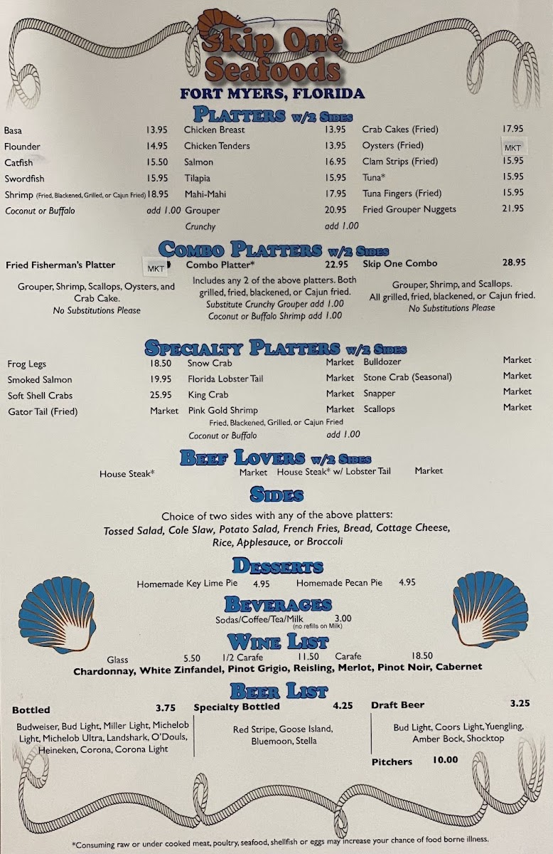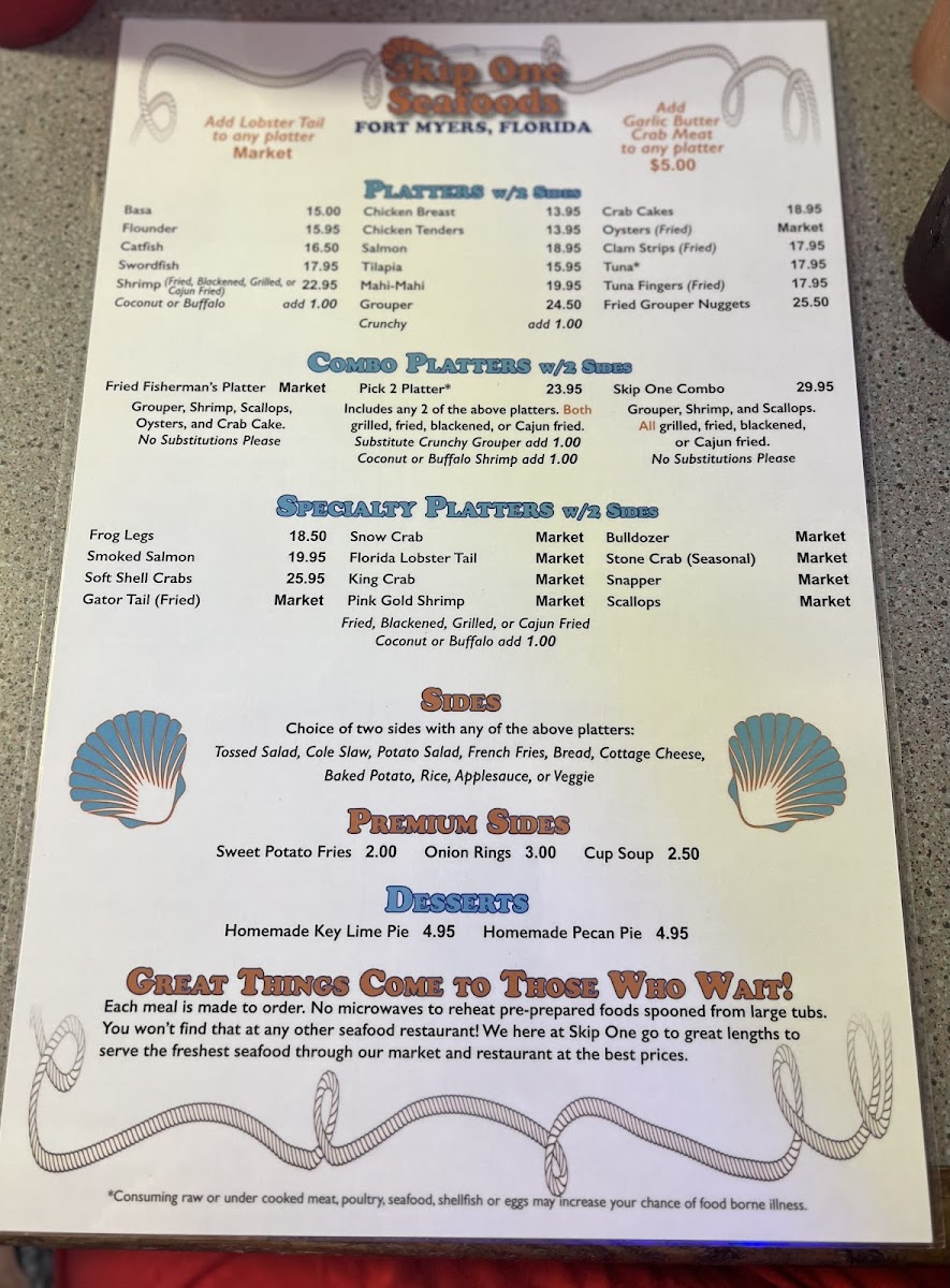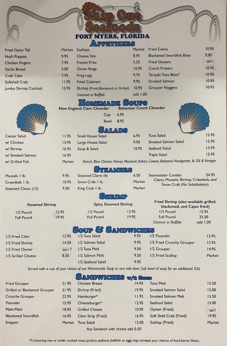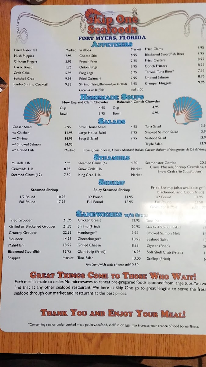 Introducing Skip One 41, a hidden gem on the shores of Fort Myers, Florida, where seafood lovers find a welcoming home away from home. Located at 15820 S Tamiami Trail, this no-frills eatery serves up fresh catches straight from local shrimp boats, ensuring each dish bursts with flavor.