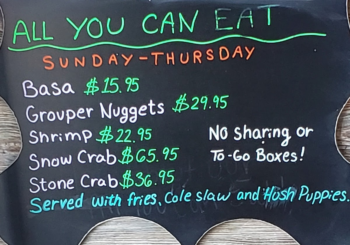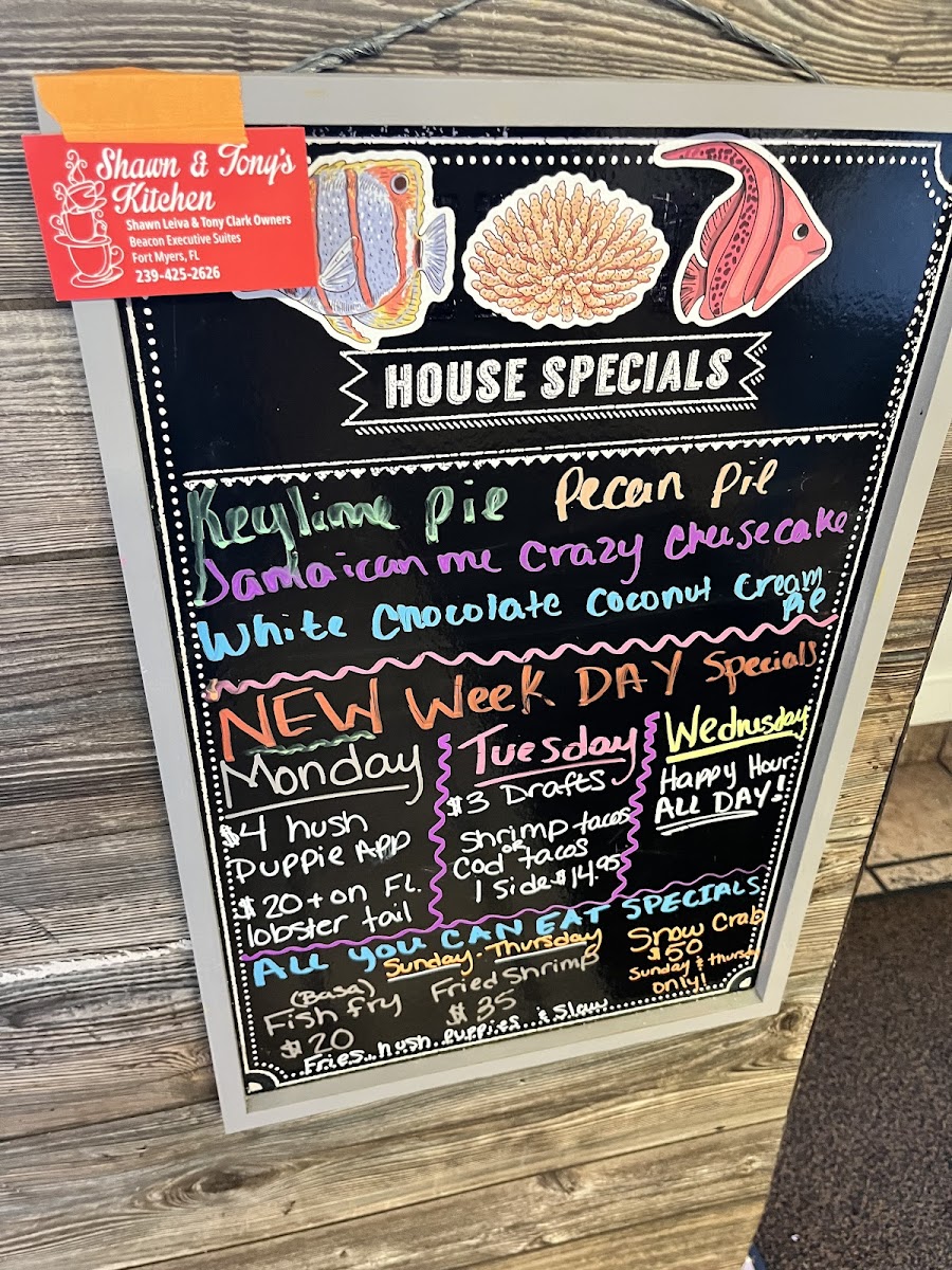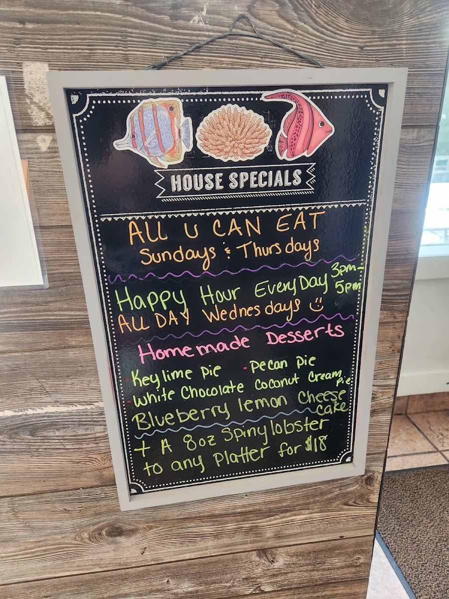 The menu shines with a diverse selection of appetizers like crispy Hush Puppies and tantalizing Buffalo Shrimp, alongside stellar sandwiches such as the Fried Grouper and the savory Smoked Salmon Melt. For heartier appetites, the specialty platters featuring King Crab and Florida Lobster Tail promise a feast to remember.